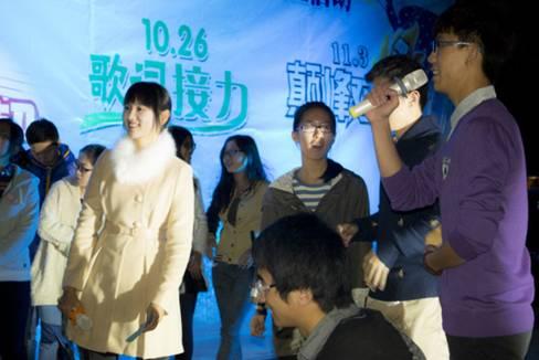 经过前期海选和淘汰赛,本场30对参赛选手被分为10组,每两组间进行PK。组内选手自主选择歌词模块,完整无误接出领唱所唱歌曲的歌词得分,分数较高组晋级。比赛过程中,《会呼吸的痛》、《下一个天亮》等一首首耳熟能详的歌曲飞扬在樱花广场的上空,各组选手旗鼓相当,颇有种“不把歌唱遍不罢休”之势。他们对歌词精准的记忆引起阵阵赞叹,而领唱的惊艳歌声也让观众欢呼连连。南航 “十佳歌手”许金的出场更是将气氛推上高潮。虽是清唱,但歌声依然清丽动听,台下掌声与欢呼不绝于耳。现场一对参与比赛的同学说“这次比赛虽然是我和一个室友一起参赛,但是全寝室的人都为我们准备加油,不仅让我们体会了团队并肩作战的重要性,更增强了我们寝室之间的凝聚力和默契度,大家在一起准备比赛的感觉非常好!”经过两个半小时的欢乐放歌与激烈竞争,最终有12对选手凭借丰富的歌词积累度与高度的默契杀出重围,进入比赛终极比拼。