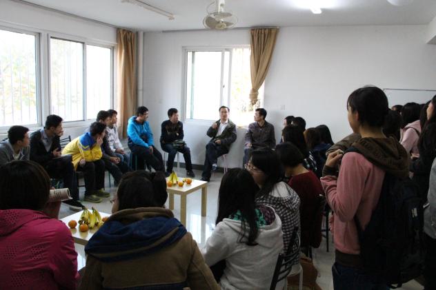 11月4日中午,经济与管理学院2013级学生公寓社区首期沙龙举行,副院长朱建军教授、管理科学与工程系副主任沈洋副教授深入学生公寓社区活动室,与新生畅谈本科生导师制,2013级辅导员佘明一同参与活动。