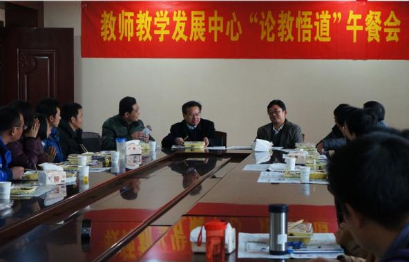 报告会结束后,教务处处长王成华教授 、我院长周德群教授、副院长张卓教授与20位青年教师共进午餐,午餐会由校教师教学发展中心办公室主任教务处副处长江爱华主持,教师们在轻松愉悦的氛围中,共同探讨教学工作中的共性问题,结合自身教学工作的实际,围绕企业实习、研究性课程建设、毕设评价机制、本科生导师管理、本科生创新训练等教学过程中遇到的难点和问题提出了想法,三位教授也同青年教师们分享了教育教学的成功经验,为大家剖析教育教学中的热点、难点,一同探求教学育人之道。 (审核人:朱建军)