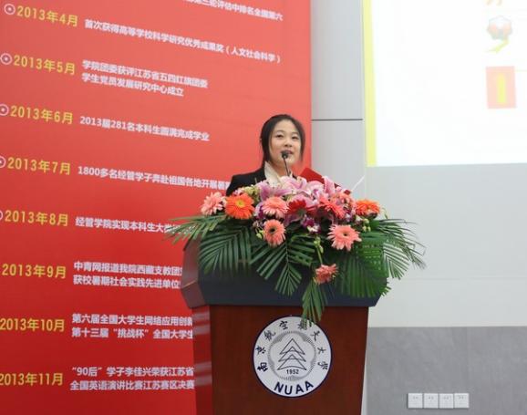 一年来经管学子在素质能力培养涌现出很多杰出的代表,顺利保送北京大学攻读硕士学位的2010级金融学专业本科生张畅,用她在学习求索道路上的奋斗故事,分享勤奋的汗水折射青春最美光芒的力量;材料学院吴清春同学在沉沦后重新振作,讲述了坚持和毅力的力量;“江苏省十大杰出青年” 李佳兴,作为唯一当选的高校学子分享她的志愿之旅,用行动展现着中国志愿者的靓丽风采,用笑容为南航志愿精神代言;第十三届“挑战杯”中国大学生课外学生科技作品竞赛一等奖获得者金蓉英借助专业知识积极参与科技创新,取得骄人的成绩,与大家分享了她的挑战之行;完全由经管本科生组成的蚂蚁帮帮从无数优秀团体中脱颖而出,获得学校优秀团队称号,现场讲述了蚂蚁帮帮创业,成功获得20万政府资助的故事;2011级文强班则以“商家国四海之事,理内外八方之难,怀兼济天下之心,育经天纬地之才”为班训,根植梦想,协同发展,感动了每一位听众。