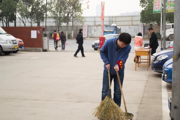清扫大街,擦拭宣传栏,与爷爷奶奶聊天,帮助他们修理小家电……从社区街道到宣传栏,从居民门口到住户家,一路上都能看到戴着“助力秦淮,志愿活动”红色袖章的同学们服务的身影。虽有方言的沟通障碍,虽有繁重的清扫任务,但当看到焕然一新的街道,支部成员的幸福感油然而生。当有老奶奶亲切的呼唤门前清扫的同学中午去自己家里吃饭时,大家都感动万分,深深地觉得自己的劳动受到了肯定。