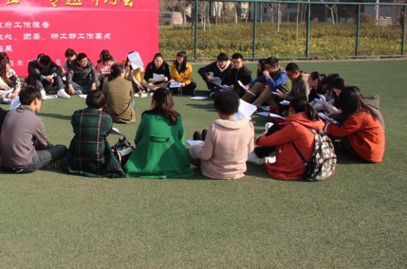 悦享二:工作要点我来研。两会学习后,同学们分成不同小组,以小组为单位就国家看学校,学习学校学生处、团委、研工部工作要点,并结合各自工作,谈体会与所得,谈工作设想与改进,谈启发与联想,并以小组为单位推荐同学开展现场“演讲”,锻炼逻辑思维能力、现场语言组织表达能力等,针对大家对工作中的疑问,任慈老师做了耐心的解答,积极引导同学们从更加长远和全面的角度思考问题。悦享会在阵阵掌声中圆满结束,很多同学在会后发表微博微信表示“受益颇深”。