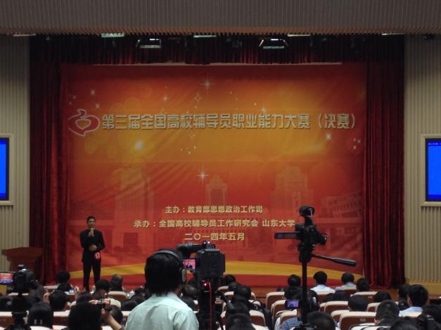 近日,第三届全国高校辅导员职业能力大赛决赛在山东大学落下帷幕。经过激烈角逐,我院2013级本科生辅导员佘明一路过关斩将,凭借优异的表现从来自全国六个赛区的60名优秀辅导员中脱颖而出,进入全国决赛的第二轮,并最终以总分第13名的成绩荣获全国高校辅导员职业能力大赛三等奖。
