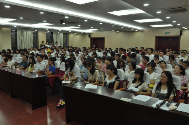 在主持人向大家推介了经管2014级新生辅导员团队后,心理中心杨雪花老师向大家讲解了大学阶段学生常见的心理问题,“学业问题、情感问题、人际关系问题”,并说很多家长存在“分离焦虑”,参与活动的家长不住点头,纷纷拿起笔记下关注学生成长的要点,为孩子的未来共同努力。随后,邓晶教授从学习方面给每位新生上了大学第一场“专业课”,他指出“目标不明确”可能是新生跟不上学习的一个原因,他主张学生善于把握乐趣,同时将知识和实践相结合。邓老师幽默风趣的讲话逗笑了在场的学生和家长,也让大家对大学专业有了初步的认识。接下来,任慈老师以“团学那些事儿”为切入点,带给大家不一样的“优秀”概念,向大家详解“共青团”在大学阶段发挥的作用,在学生成长中搭建的平台,并教会大家如何加入“共青团”指导下的各级学生组织,并鼓励所有学生在学习和工作、生活之间维持良好的平衡,引发了在此学生的思考。