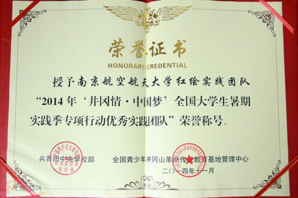 11月6日,2014年“井冈情·中国梦”全国大学生暑期实践季专项行动总结暨成果展示活动在全国青少年井冈山革命传统传统教育基地举行,团中央书记处书记傅振邦出席并讲话。我校经济与管理学院“红绘”实践团队表现出色,获得“优秀实践团队”荣誉称号。