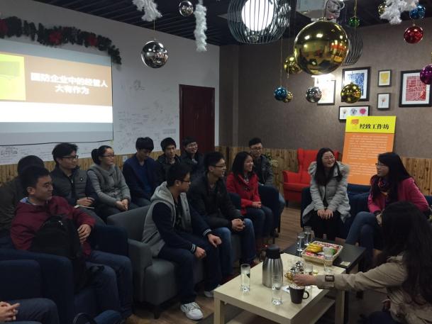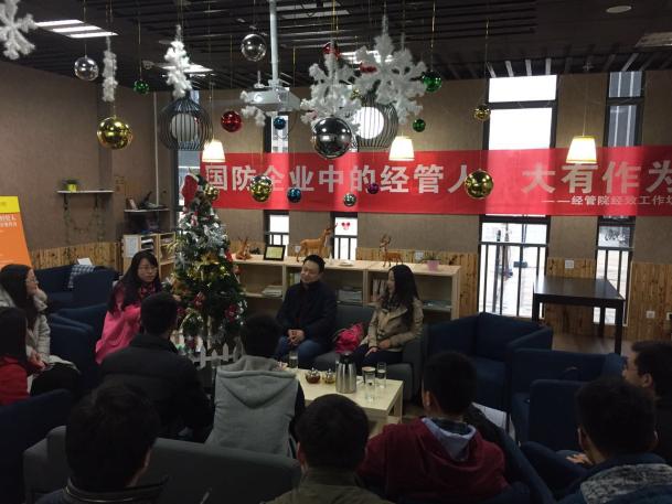 3月20日下午,经济与管理学院在学院W&M咖啡屋进行了经致工作坊启动仪式,并邀请中航工业成都飞机工业(集团)有限责任公司人力资源部贾宇航主任和宋颖老师,以“国防企业中的经管人,大有作为”为主题,进行了近两个小时的主题交流,学院副院长朱建军、党委副书记许静、管理科学与工程系系主任马静、负责学院职业生涯规划教育的辅导员庞依达与近二十名本科生研究生参加了此次工作坊。