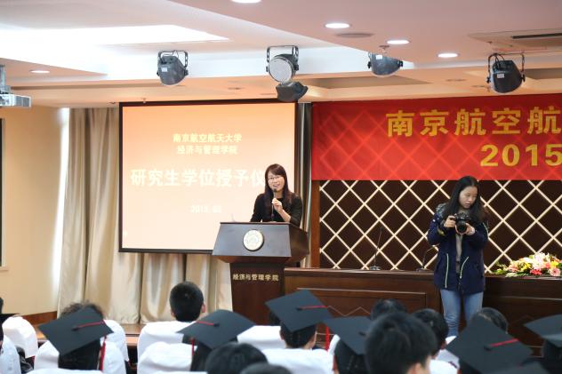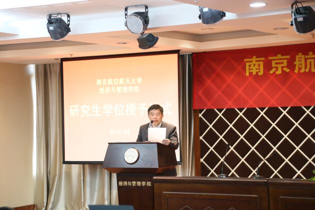 4月9日下午,经济与管理学院在将军路校区学院报告厅举行2015届研究生毕业典礼。学院领导、专业老师代表、2015届研究生和家长代表出席了典礼。