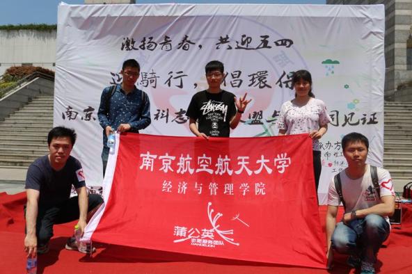 4月26日,由南大、东大、南航、南理工等十余所南京高校商学院志愿者联合的“迎五四,倡环保”志愿骑行活动正式启动,南航经管院蒲公英团队与来自南京其他高校的百余名志愿者一同参加,共同沐浴金陵春色,享受骑行欢乐,宣传环保理念。