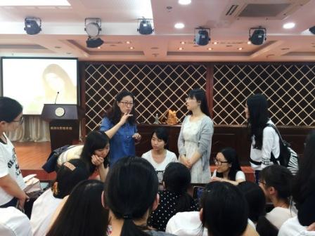 王老师从重要的第一印象入手,将职业形象划分为形象的塑造、维护、优化,工作的态度、意识、心态,接待礼仪、语言礼仪、餐饮礼仪、化妆礼仪、姿态礼仪等,分别从男性和女性两个方面做出了讲解,对比了不同职业对于妆容和形象的不同要求,也包括同一公司的不同身份要求的不同。王老师言语风趣幽默,用形象生动的语言让大家对一些礼仪的红黑榜有了深刻记忆,比如“再优质的香水也斗不过一个韭菜盒子”,“劣质丝袜穿起来就是两条油油闪亮的腿”等,让大家在一片笑声中牢牢记住这些禁忌点。