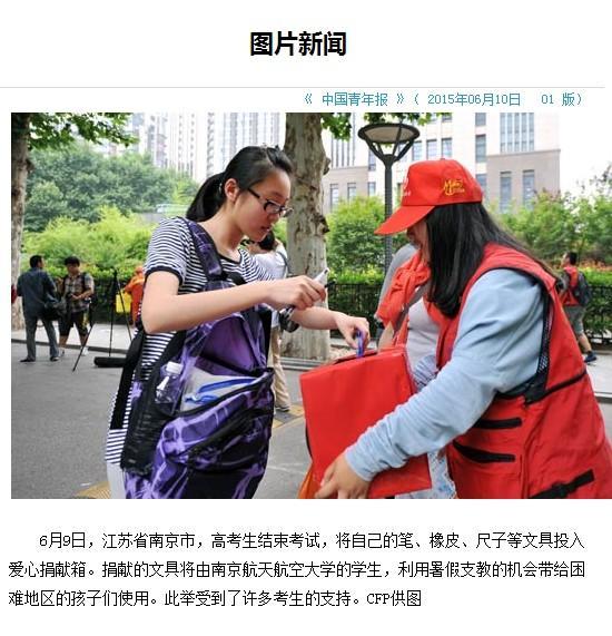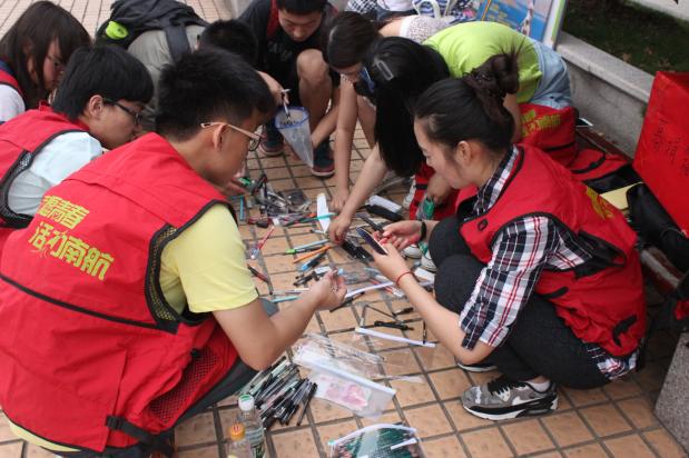 当高考的学子走出考场如释重负的那一瞬,志愿者上前将来意讲明,鼓励学子们将自己的尺规笔杆、草稿纸投入募捐箱。随着越来越多的学子从紧张的考场中走出,募捐箱渐渐被他们的爱心充满。在这个小小的红色募捐箱里,那些长短不一,种类繁杂的文具,是一个又一个学生、一个又一个家庭的梦想,然而在不久后这些梦想将远赴千里,去帮助和实现另外一群孩子的理想。