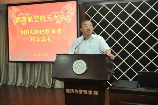 9月12日上午9时,南京航空航天大学MBA2015级南京班开学典礼暨新生奖学金颁奖仪式在经济与管理学院报告厅A305召开。MBA新生怀着无比激动的心情走进了他们心中的理想学府,踏上了人生中另一个崭新征程。会议由MBA中心副主任杜刚主持。校研究生院副院长沈以赴,经管学院院长周德群、党委书记焦宏图、副院长王英、院长助理周鹏、MBA中心副主任修立军以及MBA中心的全体工作人员参加了典礼。