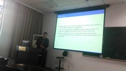 2015年11月5日下午3点半,在经济与管理学院大楼704报告厅,南京大学陈煜博士来学院,作了题为“Optimal Contracts with the Inclusion of Observable Actions in Generalized Moral Hazard Problems”的报告。副院长王英,区域经济与产业经济研究所所长江可申,智能决策与风险分析研究所的陈晔、陈洪转、李杰,区域经济与产业经济研究所的苗建军、张伟、马晓平等老师以及两所的全体研究生参加了此次报告。