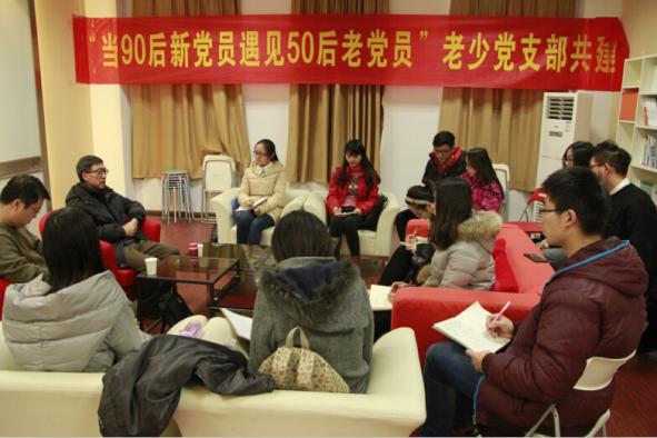 12月17日,经济与管理学院2014级党支部在经管楼510沙龙室举行了党支部成立仪式,并开启了“当90后新党员遇见50后老党员”老少党支部共建的序幕,校离退休第七党支部书记皋德仲老师、年级辅导员庞依达老师和支部成员一同参加了此次会议。