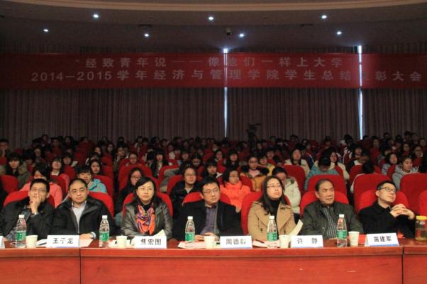 为了表彰先进,激励经管学子奋发图强,传承“经世致用”的思想,经管学院于12月29日下午在主楼报告厅举办了“经致青年说”像他们一样上大学学院学生总结表彰会,学院院长周德群、院党委书记焦宏图、院党委副书记许静、工商管理系主任王子龙、工商管理系副主任张浩、经济系副主任徐菱涓、管理科学与工程系副主任沈洋,以及学院教师代表,400多名学生代表参加。