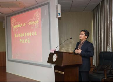 5月23日上午,南京航空航天大学经济与管理学院迎来了第七一六研究所高级管理培训班的全体学员,上午8时在经管院报告厅305举行了隆重的开班典礼,第七一六研究所人力资源部主任刘全、经济与管理学院院长周德群、教育培训中心副主任杜刚等出席典礼。周德群致开幕词,他首先代表学院对各位学员的到来表示了热烈欢迎,并简要介绍了南航大以及经管院的发展情况,他说南航和第七一六研究所有着深厚的友谊,此次培训经管院集中了优质的师资,教育培训中心进行了认真的组织和安排,希望学员们能学有所获。周德群对学员们提出了三点期望:一是多问;二是多思;三是多交流。随后,第七一六研究所学员代表王学宝发言,他对南航大经管院提供这么好的学习机会表示感谢,并表态在这一周时间里,学员们会带着问题来学习,不断充实自己,将所学的知识运用到工作中去,蓄积能量,回报社会。典礼最后,刘全代表第七一六研究所表达了对南航大及经管院的感谢,并对学员在此次培训中提出三点要求:一是遵章守纪,珍惜机会,好好学习;二是注重课后纪律,学习生活规范条理;三是注意安全,提高各项效率。