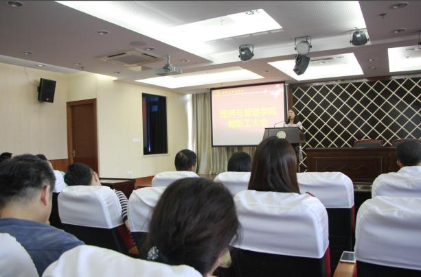会上,院长周德群首先回顾了过去一学期的工作。他指出,上半年是学院各项事业发展重要的阶段,全体教职工紧紧围绕学校“十三五”发展规划和学院改革目标,较好的完成了各项目标任务。教学工作全面加强,引进3名青年教师,促进了教学和师资队伍的建设。人才培养又出新亮点,青年教师周鹏入选2016国家杰青年已经公示。科研工作取得重大突破,获得国家自然科学基金6项、国家社科基金5项。我院自2015年来实行教师聘任双轨制,此次国家自科青年基金我院高中3项,体制改革对青年教师起到的培养和激励的成效已初步显现。高端培训国际化初显端倪,学院与法国、西班牙等国家签订协议,联合办学,培养高端人才。在深刻分析了学校相关政策和我院发展所面临的形势后,周德群对新学期的工作进行了部署,强调要坚持学院改革发展目标不动摇,全面加强学院文化建设,以提高人才培养质量为核心,积极探索和创新教师培养模式。以满足人才需求、社会需求、教育需求为目标,进一步调整优化专业结构,提高教师总体水平。