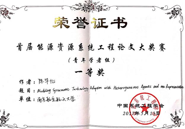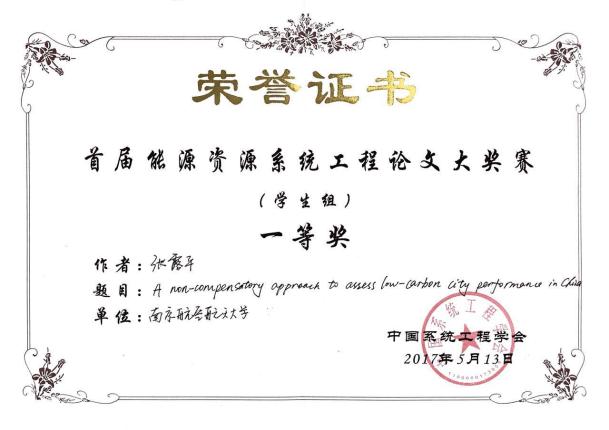 据悉,此次会议有来自海内外30多个科研机构和高等院校的近300名专家学者出席,以论文盲审初选和现场报告专家打分的综合方式评选出首届能源资源系统工程论文大奖,获奖比例约占论文全文投稿总数的20%。此次能源资源系统工程论文大奖赛共设有17个奖项,其中青年学者组设一等奖1名、二等奖2名、三等奖3名,学生组设一等奖1名、二等奖3名、三等奖7名。经过激烈的竞争,我院师生最终共获奖4项,分别揽括青年教师组和学生组头筹,这是对我院能源软科学研究团队科研工作的充分肯定。