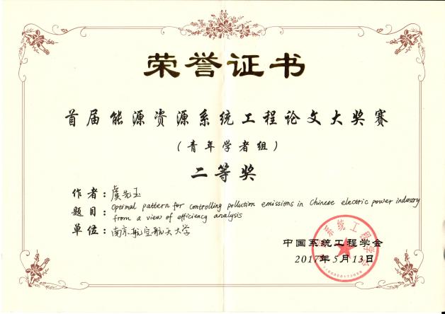 近日,在第二届中国能源资源系统工程学术年会上,经济与管理学院师生取得了可喜的成绩。其中,陈华忆老师的论文“Modeling systematic technology adoption with heterogeneous agents and one representative”获得青年学者组一等奖,虞先玉老师的论文“Optimal pattern for controlling pollution emissions in Chinese electric power industry from a view of efficiency analysis” 获得青年学者组二等奖,张露平博士生的论文“A non-compensatory approach to assess low-carbon city performance in China”获得学生组一等奖,刘笑博士生的论文“Flying into the future: Scenario analysis of CO2 emissions from China’s civil aviation”获得学生组三等奖。