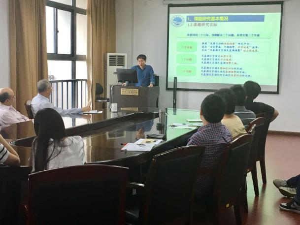 殷克东教授以主持的国家社科重大项目——中国沿海典型区域风暴潮灾害损失监测预警研究为例,分享了他撰写和完成该项目中的心得、感悟。殷教授以深入浅出的语言,介绍了海洋经济的重要性、风暴潮灾害损失测算预警的必要性。条理清晰地阐述了中国沿海典型区域风暴潮灾害损失监测预警的研究思路、研究方法和研究内容。图文并茂地讲述的项目开展中的重点和难点,以及目前研究取得的成果。并讲述了灰色系统理论在少数据、贫信息的海洋风暴潮灾害损失评估与预测中的应用。报告期间,在座师生踊跃提问,积极与殷教授交流,报告在轻松愉悦的氛围中圆满结束。