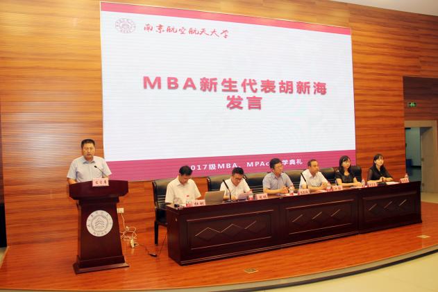 2017级MBA新生胡新海代表新生发言,他由衷感谢研究生院、经管院的领导和老师,给了其深造的机会,并坚信选择南航MBA是人生中一个正确的抉择,希望所有南航MBA人都能够做一名学有专攻、富有远见、高尚敬业的中高层管理人才和创业、创新精英,成为素质过硬、具有国际视野和创新精神的经管人才,最终成为管理精英和商界领航者,他还代表了所有学员祝敬爱的老师们节日快乐!