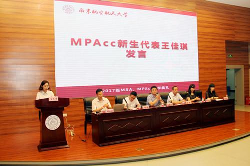 2017级MPAcc新生王佳琪代表新生发言,向各位领导和老师表达敬意和感谢,发言中表示要做一个有定力的人,不随物流,不为境转,保持长线投资者的心态。其次,做一个有韧性的人,锲而不舍不畏艰难,可以被暂时打倒,但是我们仍能站起来。最后,做一个有创新精神的人,尝试去使用天赋之权,不必把尖磨平,不必妥协于随波之逐流。