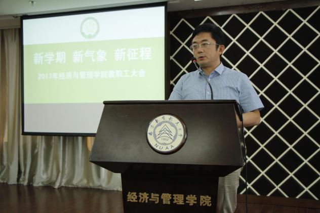 9月8日上午,经济与管理学院在学院报告厅召开全院教职工大会,院党委书记焦宏图,院长周德群,副院长周鹏、王英、邓晶,院党委副书记许静,以及近百名教职工参加了会议,会议由院党委书记焦宏图主持。