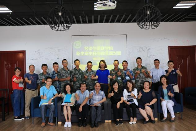 9月21 日,经济与管理学院在经管咖啡馆召开2017级新生班主任和教官面对面座谈会。院党委书记焦宏图、副院长邓晶、党委副书记许静、2017级新生班主任、辅导员以及我院新生带训教官参加了此次座谈。