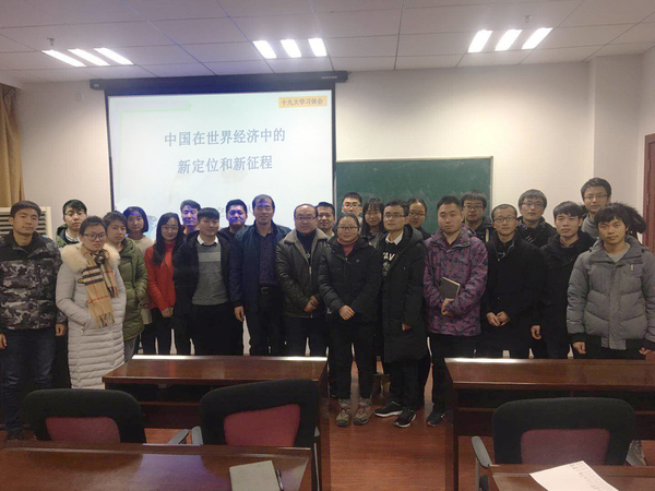 2017年12月26日下午,经济与管理学院17级博士生党支部全体党员、预备党员以及入党积极分子参加了由17级博士生党支部组织的十九大主题讲座学习活动,目的在于深入学习宣传贯彻党的十九大精神。我校党十九大宣讲团成员、经管学院副院长邓晶老师为17级博士生做了主题为“中国在世界经济中的新定位和新征程”的精彩讲座。
