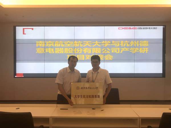 5月31日,经管学院与德意电器股份有限公司(以下简称德意电器)在杭州萧山研制基地举行南京航空航天大学大学生实习实践基地签约揭牌仪式。南京航空航天大学经济与管理学院副院长邓晶、工业工程研究所所长庄品和青年教师徐志涛、虞先玉、高广鑫、辅导员朱一豪,以及德意集团行政总裁朱伟中、德意电器总经理高利见和和部门主管十余人共同参加了本次活动并开展深入座谈,积极探索建设校企协同育人新模式。