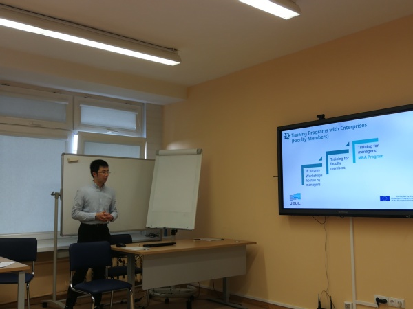 立陶宛维尔纽斯大学教师代表结合具体的课程分享了如何利用企业资源进行案例教学的方法。与会代表积极介绍了各自学校如何结合校企合作进行学科建设、课程案例教学的经验。