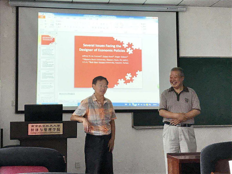 2018年6月27日上午,应南京航空航天大学刘思峰教授的邀请,美国宾州州立SR大学林益教授在经管学院704室做了精彩的学术报告,经管学院刘思峰教授、党耀国教授、菅利荣教授、谢乃明教授、陈晔教授、袁潮清副教授、陶良彦讲师及部分博硕研究生、本科生现场聆听。
