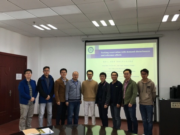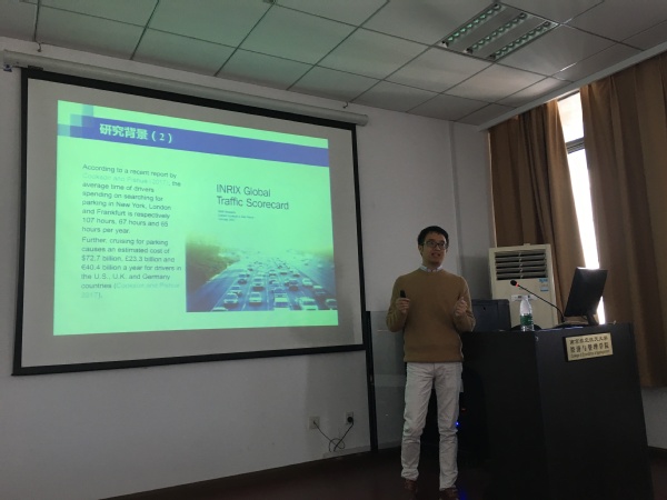 当前,随着城市私家车辆的急剧增多,停车难已成为大城市的通病,如何解决停车难问题是当前学术界、政府共同面临的难题。徐教授分享自己最新的研究成果——一种基于拍卖理论的停车位预约方案。用户基于拍卖平台对停车位及停车时段进行预约,考虑私家车停车时间不确定性,通过惩罚与补偿机制对停车位延期的等随机扰动进行处理。基于一系列实验,论证了该方案的有效性及与其他停车方案的优势。徐老师通过一个个实例深入浅出将停车位预约背后的复杂数学模型和管理问题跟大家娓娓道来,引起了大家极大的兴趣。报告中与会老师和同学积极进行提问,徐老师一一耐心解答。