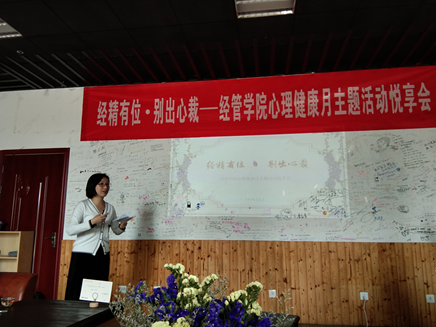 11月2日中午,“经精有位 · 别出心裁”心理健康月主题活动悦享会于经管咖啡厅顺利举办。校心理健康教育中心陈瑜老师、我院心理辅导员田苑娜、大一辅导员胡心雨、许乃元以及13名2018级心理气象员共同参加了此次悦享会。