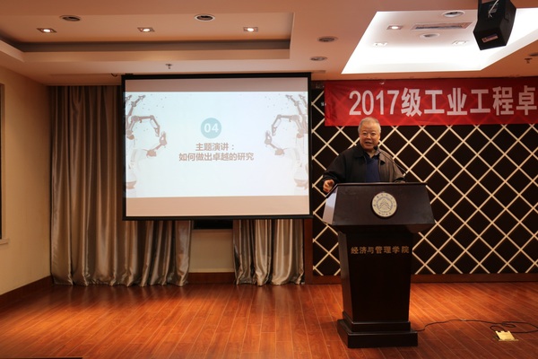 最后,周德群院长对此次典礼进行总结。周院长对各位工业工程专业的老师们表示了感谢,他从“目标”、“责任”、“习惯”三个维度出发,分享了他对于“卓越”一词的理解,建议17级卓工班秉承着精益求精、不断完善的IE精神,在思政引领、学风建设、科创研修等多个方面都要做到卓越。