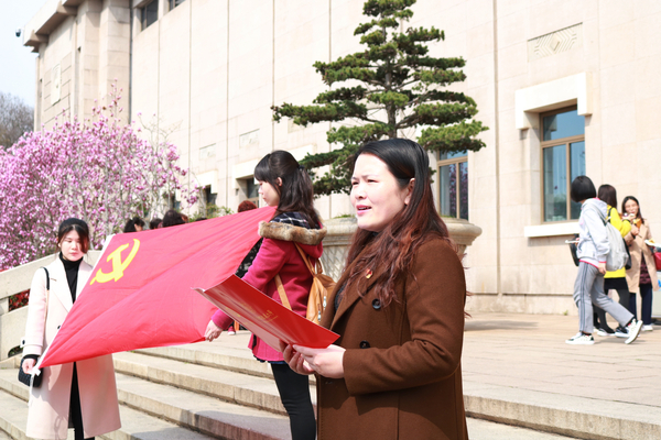 3月23日上午,经济与管理学院党委副书记涂志宏、学生党总支委员、支部书记代表和2018年度73名新发展党员共同前往雨花台烈士纪念馆参观学习并举行了2018年度新发展党员入党宣誓仪式。
