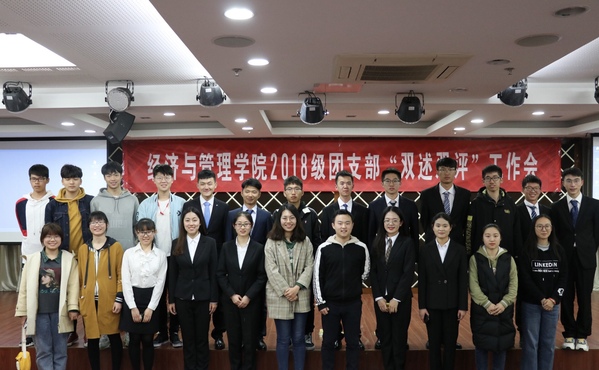 3月26日下午,经济与管理学院2018级团支部“双述双评”工作会于学院A0305成功举办。2018级辅导员胡心雨、许乃元及全体班委参加了此次活动。
