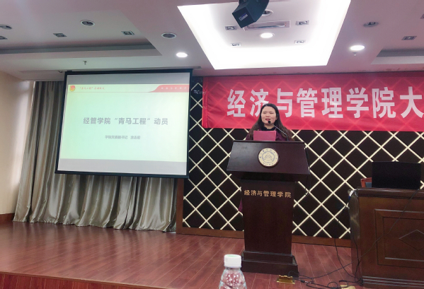 首先,学院团委书记庞依达进行了经济与管理学院青马工程推介,他从青马工程的历史和校团委构建的青马工程体系出发,宣讲了青马工程的目的和意义、三个改革点、进阶式课程体系和考核方式。涂志宏代表学院党委进行了学员动员,他从校教育教学思想大讨论出发,阐述了校人才培养目标、院人才培养使命和青马工程的关系,她认为学院使命和学校人才培养目标有着共同追求,号召学员们在本次系列培训中不断提升高尚品德、责任意识和家国情怀,不断修炼自己的马克思主义世界观和方法论,并建议学员们从融会贯通、心怀责任、贴近实际、满载激情四个维度进行马克思主义精神的学习。