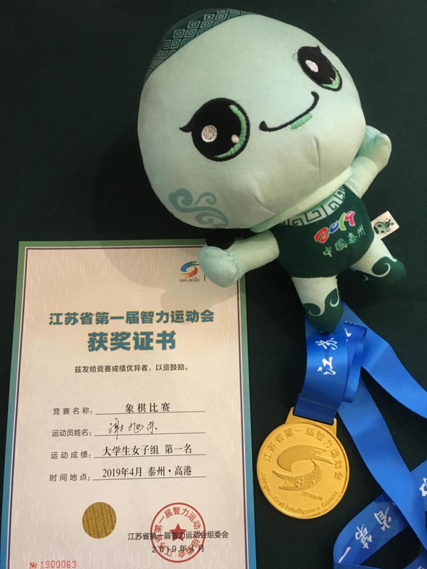 4月15日至4月18日,江苏省第一届智力运动会中国象棋比赛在泰州举行,共有270名运动员、教练员和裁判员等参与此赛事。我院谢旭东同学作为我校唯一一名代表参加了本次赛事,并以三胜二和的不败战绩取得了江苏省第一届智力运动会中国象棋大学生女子冠军,为南京市摘得一枚宝贵的金牌。