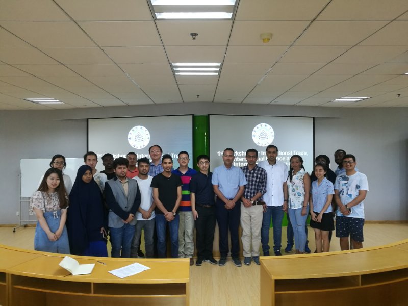 6月21日下午,经济与管理学院举行了首期留学研究生经济与金融学术研讨会,经管院副院长王群伟、院长助理陆珩瑱、经济系系主任袁潮清、以及相关专业的近二十位留学生参加了研讨会。