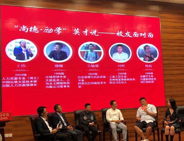 10月10日下午,经济与管理学院“尚德•励学”英才说校友面对面活动在将军路校区一号楼四楼报告厅举行。我校2013级人力资源专业方向博士生校友、中国运载火箭技术研究院人力资源部部长王伟,1998级市场营销专业校友、上海从玉网络科技有限公司董事长魏啸,2002级信息管理与信息工程专业校友、阿里巴巴高级技术专家吴毓雄,2003级工业工程专业校友、苏州牧星智能科技有限公司创始人刘明,2008级金融学专业校友、高盛集团投资银行部经理畅超应邀来为我院师生授课。经济与管理学院党委书记焦宏图、副书记涂志宏、副院长邓晶及400余名本科生参加了本次活动。活动由辅导员康冲主持。
