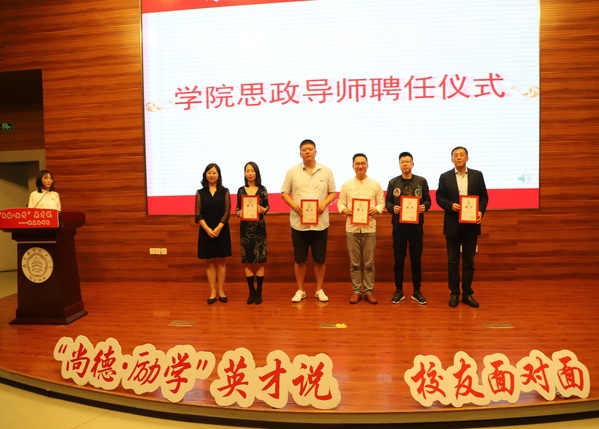 紧接着,举行了学院思想政治工作导师团的聘任仪式,焦宏图为五位杰出校友颁发经济与管理学院思政导师聘书并合影留念。