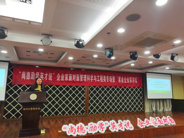 经济与管理学院一直高度重视企业家、校友等群体的协同育人工作,为发挥杰出企业家的模范性、前瞻性、榜样性作用,学院将继续开展“尚德•励学”英才说系列活动,帮助同学们明确人生方向,提高思想认识,做好职业规划。学院也将近期与南京市企业联合会就学生实习实践、招聘就业等事宜展开进一步合作。