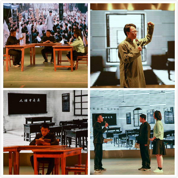 话剧分为1919五四风云、1949建国前夜、1979改革开放、2019新时代四幕,以各个时代青年学生爱国情、报国行为主线,回溯了中国从站起来、富起来再到强起来的艰苦历程,集中展现了各个时代青年学子始终与祖国共奋进的赤子之心和家国情怀。通过该剧深刻立体的人物刻画、饱含深情的台词设计、精准到位的演员演绎,在场师生充分感受到了“一代人有一代的长征,一代人有一代人的担当”的精神内涵,演出结束时掌声经久不息。
