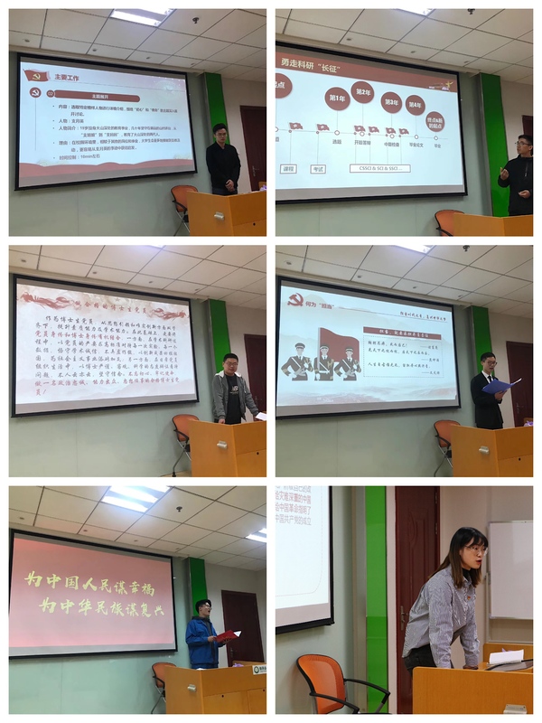 比赛过程中,来自17个支部的19名学生党员代表进行了党课展示。来自博士生17级党支部的周潇从红军长征联系到目前广大博士生面临的“科研长征”,指出学术科研就是一项“差一点点就成功、差一点点就失败”的事业,博士们要潜心学习,在科研中发扬长征精神;研究生18级第一党支部董天皓结合习总书记纪念五四运动100周年大会讲话、中国共产党党员教育管理工作条例、中共中央关于加强党的政治建设的意见等6项文件展开了关于学生党员教育的漫谈;本科生16级第一党支部刘阁从弘扬科学家精神的必要性角度,以钱学森为例,从胸怀祖国、勇攀高峰、严谨治学、淡泊名利、团结协作等方面阐释了科学家精神的内涵,号召广大学生要将人生志向选择“绑定”国家战略需求,为建设教育强国作出“无愧于时代、无愧于人民、无愧于历史”的贡献。学生党员们用精心准备的课件、深思熟虑后的讲稿为在场的每一位观众展示了原汁原味的党课,全程高潮不断,引发了大家对党的理论知识,党员教育途径的新思考。