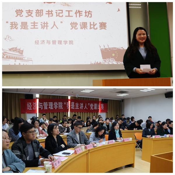 11月19日,经管学院在院楼A0304会议室举办了新一期党支部书记工作坊,活动以“我是主讲人”党课比赛的形式开展,院党委书记焦宏图、组织部副部长庞小燕、校学生处副处长张亚丽、院党委副书记涂志宏、组织员袁颖、管工系教工支部高广鑫、工商系教工支部刘文龙、学生党总支成员以及学生党员代表参加了此次活动。