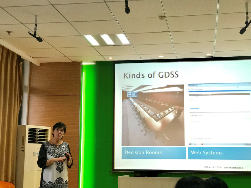 11月25日下午,法国图卢兹第一大学教授Pascale Zaraté受学院智能决策与风险分析研究所邀请,在南航将军路校区经济与管理学院706作了题为” Decision Support Systems: A Group Perspective”的讲座。我院教授徐海燕等教师及部分硕、博研究生现场聆听了Pascale Zaraté的报告,本次学术报告由徐海燕主持。