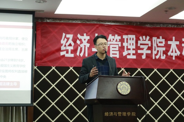 双选会伊始,康冲围绕“香港民主的前世今生”讲授主题党课,从香港暴动这一时事热点切入,揭示了港英政府时期香港“民主”的蒙蔽性与欺骗性,剖析了“颜色革命”之于香港千丝万缕的联系。康冲指出,作为学生党员,要在中美博弈的视角和制度之争、道路之争的大历史观下看待香港问题,时刻坚定“四个自信”,才能增强发展的战略定力,从而激发起实现中国梦的磅礴力量。