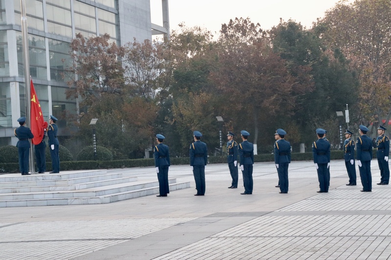 当天,经济与管理学院还在将军路校区国旗广场举行了主题为纪念“一二九”运动的升旗仪式。伴随着庄严的国歌,五星红旗冉冉升起,19级全体同学肃立注目,凝视着徐徐上升的国旗,心中充满了对祖国的热爱。礼毕,学生代表王厚桦发表国旗下讲话。随后,陆浩天同学带领全体学生朗诵《少年中国说》。同学们坚定的目光传达出对先辈的缅怀,响亮的嗓音积蓄着爱国报国的热情:做为南航学子,我们将用坚韧挑战极限,用信念雕琢未来。最后,学生代表在“传承一二九精神、勇担青春使命”的横幅上签名,愿与祖国一起奋进实现中华民族的伟大复兴。