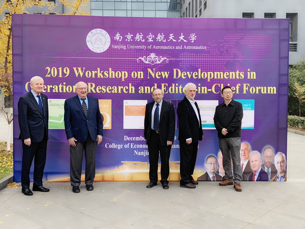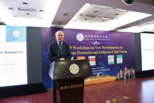 12月14日至15日,由南京航空航天大学举办的2019年运筹学新发展与国际期刊主编论坛在经济与管理学院A0305隆重举行。论坛特别邀请了INFORMS 前主席Nicholas Hall教授、European Journal of Operational Research主编Roman Słowiński教授、OMEGA 主编 Benjamin Lev教授、Information Science主编 Witold Pedrycz 教授、Group Decision and Negotiation主编 Gregory E. Kersten 教授、The Journal of Grey System主编刘思峰教授和Naval Research Logistics副主编蒋炜教授等多位著名学者。论坛吸引了来自南京、北京、上海、武汉和成都等高校近200余名学者和师生前来参会。