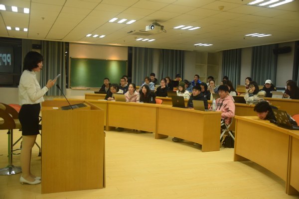 张鸾以“精准度”为关键词,就如何高效利用Excel统计、处理数据这一问题,为在场学生做了详细讲解。她从如何快速合并数据、如何拆分填充数据、如何合理运用函数、如何给数据排序以及如何筛选数据这几个方面,为在场学生传授了技巧并进行了实际的演示。同时,她给大家介绍了在制作Excel表格时经常用到的几种快捷键,为大家提供了实用且方便的技巧。